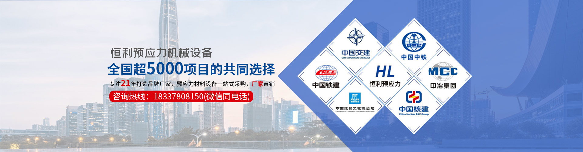 咨詢熱線:18337808150開(kāi)封市恒利預(yù)應(yīng)力機(jī)械設(shè)備有限公司是一家預(yù)應(yīng)力產(chǎn)品研制開(kāi)發(fā),機(jī)具、錨具生產(chǎn)、工程施工為一體的專(zhuān)業(yè)企業(yè)。其產(chǎn)品廣泛用于路橋、市政、高層建筑、電站建設(shè)、巖土錨固、深基坑支護(hù)等工程。公司經(jīng)過(guò)近二十年的發(fā)展,技術(shù)力量雄厚,擁有一批多年從事預(yù)應(yīng)力錨具機(jī)具設(shè)計(jì)、制造與維修和施工的專(zhuān)業(yè)技術(shù)人才,可為用戶提供優(yōu)質(zhì)價(jià)廉產(chǎn)品、良好售后服務(wù)及專(zhuān)業(yè)技術(shù)咨詢。 公司總結(jié)多年...